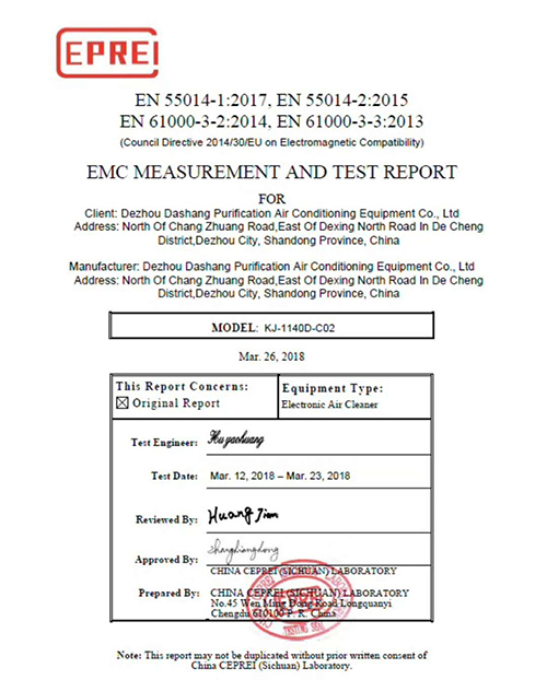 18769451650熱烈慶祝德州大商凈化空調(diào)設(shè)備有限公司研發(fā)生產(chǎn)的中央空調(diào)電子空氣凈化器系列產(chǎn)品榮獲中國電子產(chǎn)品可靠性與環(huán)境試驗研究所頒發(fā)的EMC電磁兼容認(rèn)證證書,這是檢測部門對大商中央空調(diào)電子空氣凈化器系列產(chǎn)品在產(chǎn)品性能和產(chǎn)品質(zhì)量的又一專業(yè)認(rèn)可。更加的鼓舞了大商全體同仁不斷的開發(fā)新產(chǎn)品,更好的服務(wù)于廣大用戶。